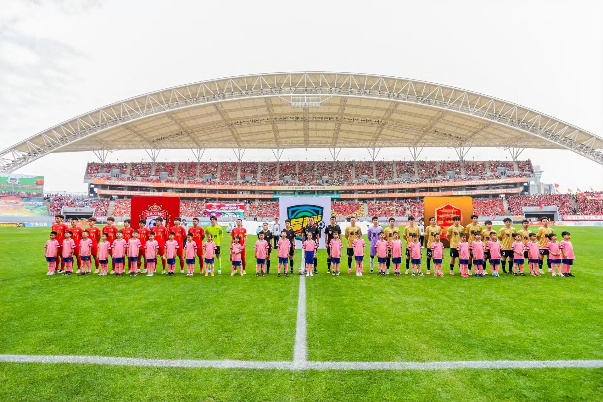千年吴越文化遇上绿茵竞技激情,科技赋能碰撞草根足球……4月6日下午,随着开球机器人“冲冲”将球稳稳传递给浙江籍年轻国脚王钰栋,2026浙商银行浙江省城市足球联赛(“吴越杯”)在嘉兴开赛,正式拉开了浙江城市足球年度大戏的帷幕。揭幕战由嘉兴队对阵衢州队,在全场观众的加油助威声中,两队攻防转换迅速、对抗节奏激烈,为全国球迷奉上一场精彩的绿茵对决。